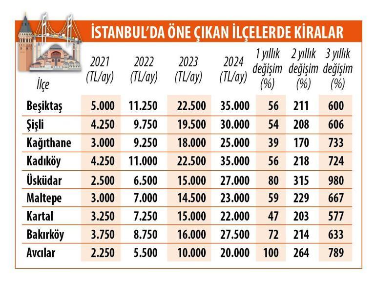 İstanbul’da öğrencilerin en çok tercih ettiği 9 ilçeye baktığımızda, 100 metrekare 2+1 daire için en uygun ortalama fiyat 20 bin TL ile Avcılar’da karşımıza çıkıyor. Onu 22-23 bin lira ile Kartal ve Maltepe izliyor. Kentin merkezinde ise sayılar bütçeleri zorluyor. Beşiktaş ve Kadıköy’de ortalama 35 bin TL, Şişli’de 30 bin TL isteniyor. Son bir yılda kira artışı yüzde 100’e ulaşırken, 3 yıllık değişime bakıldığında yüzde 980 artış dikkat çekiyor.