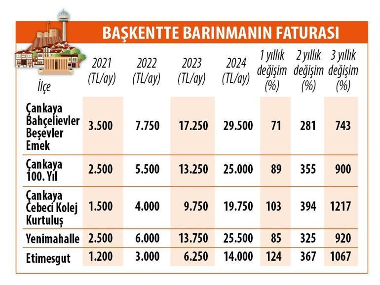 Ankara, itibarlı üniversiteler barındırması sebebiyle öğrencilerin en çok tercih ettiği vilayetlerden biri olurken, Bahçelievler, Beşevler, Emek, 100.Yıl, Cebeci, Kolej, Kurtuluş, Gazi, Beştepe, Yapracık, Turkuaz ve Yukarıyurtçu mahalleleri öne çıkıyor. Bu bölgelerde 100 metrekare 2+1 daire için ortalama kira bedeli 14 bin TL’den başlıyor. Ankara, sarsıntı felaketi sonrası ağır göç alması nedeniyle kira artışında birinci sırada yer alıyor.