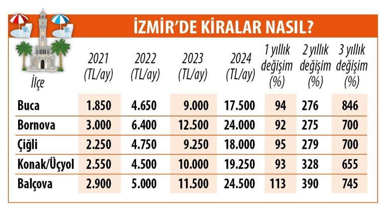 İzmir’de öğrenciler en çok üniversitelerin bulunduğu Buca, Bornova, Çiğli, Konak ve Balçova ilçelerini tercih ediyor. Son bir yılda kiraların yüzde 90’ın üzerinde arttığı bu ilçelerde 2+1 100 metrekare mesken için en uygun ortalama fiyat 17 bin 500 TL ile Buca’da. Bornova ve Balçova’da ise sayı 24 bin TL’ye kadar çıkıyor. İzmir’de öğrenci ilçelerinde 3 yılda kira artışı yüzde 800’ü aşmış durumda.