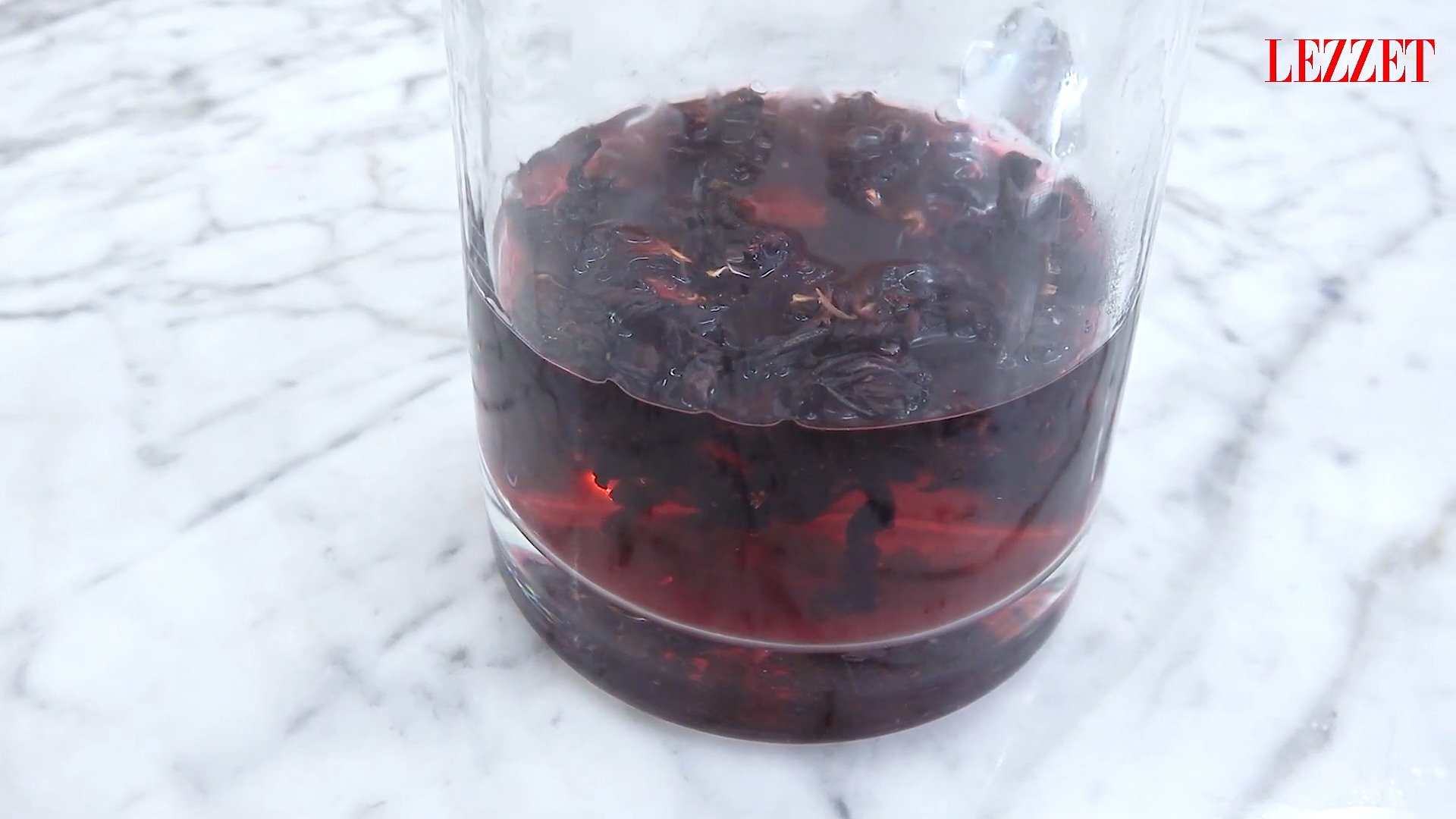 - Öncelikle bir kabın içine hibiskusları alın ve üzerine kaynar su ekleyerek 10 dakika demlemeye bırakın.