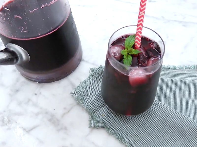 - Hibiskusun üzerine su ekleyin. Bir bardağa buz ve yaban mersini ekleyin. Hazırladığınız hibiskusu bardağa aktarın. Üzerine nane yaprağı yerleştirerek servis edin. Afiyet olsun.