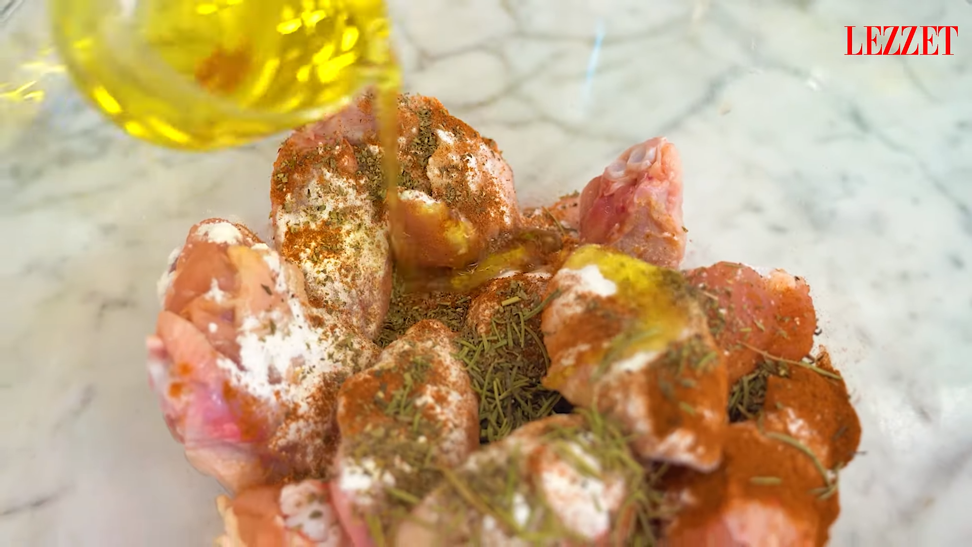 - Tavuk kanatlarını derin bir kaseye aktaralım üzerine kabartma tozu, tuz ve baharatları ekleyerek harmanlayalım.