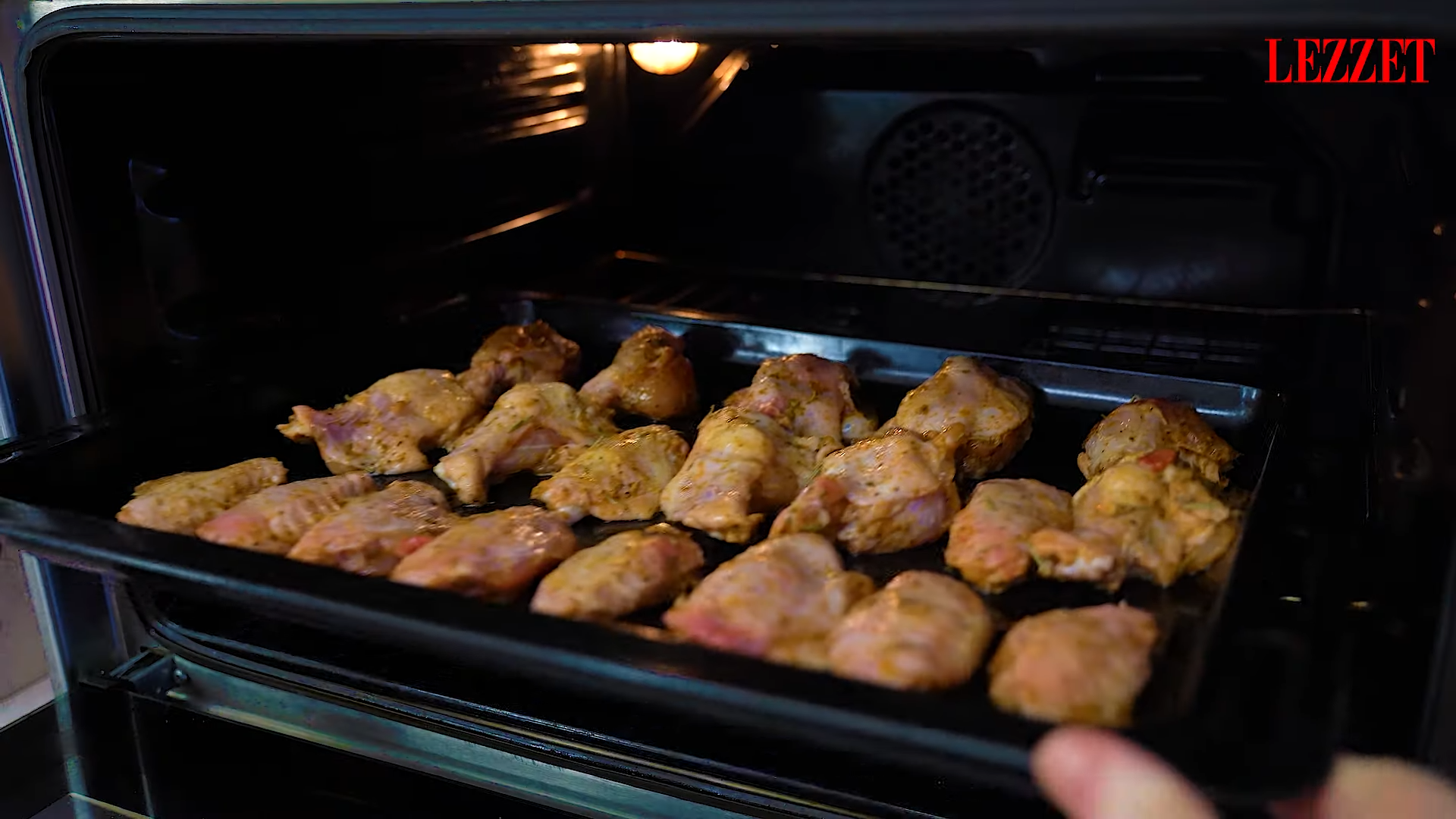 - Fırın tepsisinin tabanını çok az zeytin yağı ile yağlayalım ve kanatları üzerine dizelim.