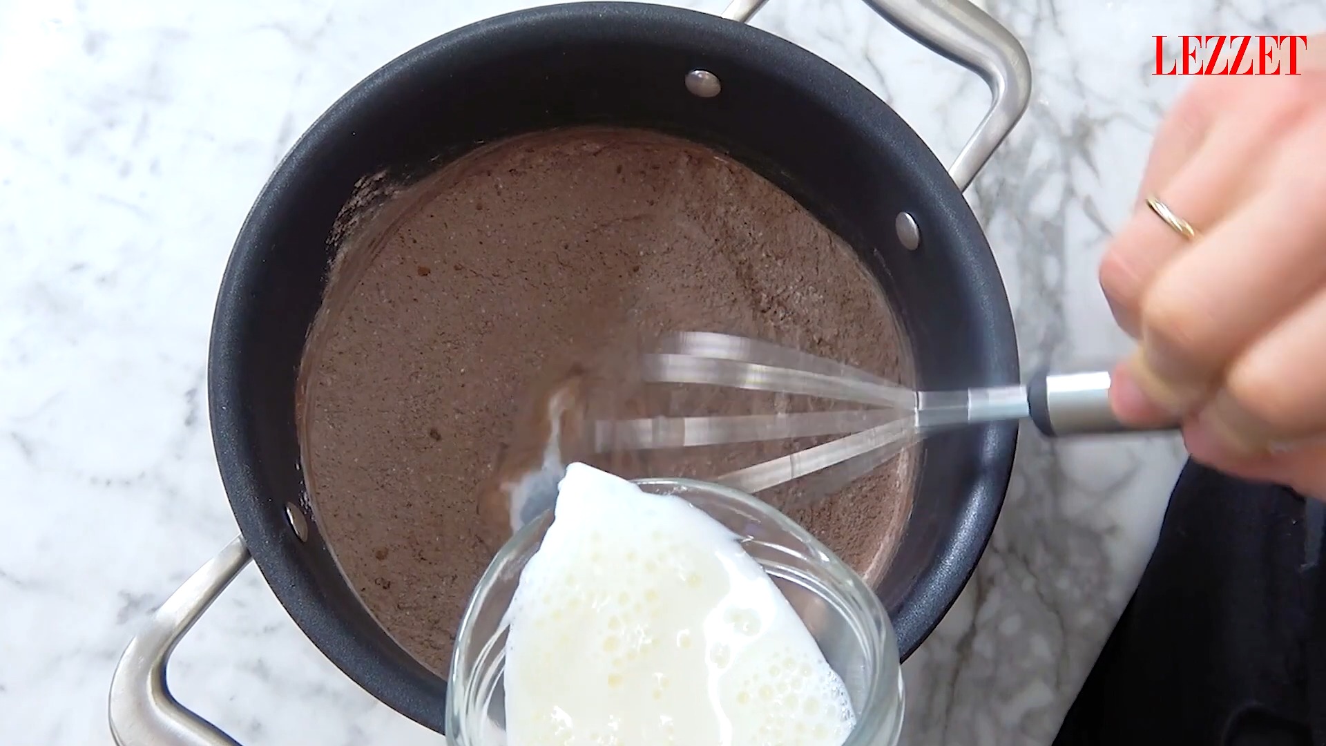 - Ardından üzerine yavaş yavaş süt ekleyerek çırpın.