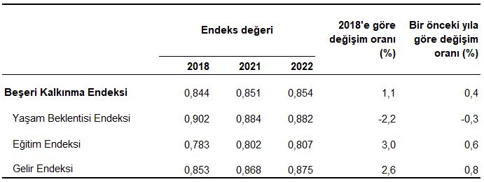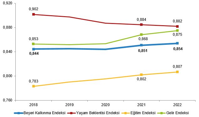 Vilayet Düzeyinde Beşeri Kalkınma Endeksi, 2018-2022