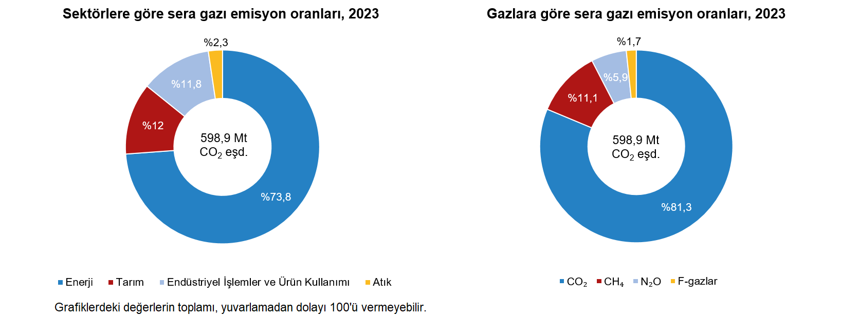 Toplam sera gazı emisyonu 2023 yılında 598,9 Mt CO2 eşdeğeri oldu