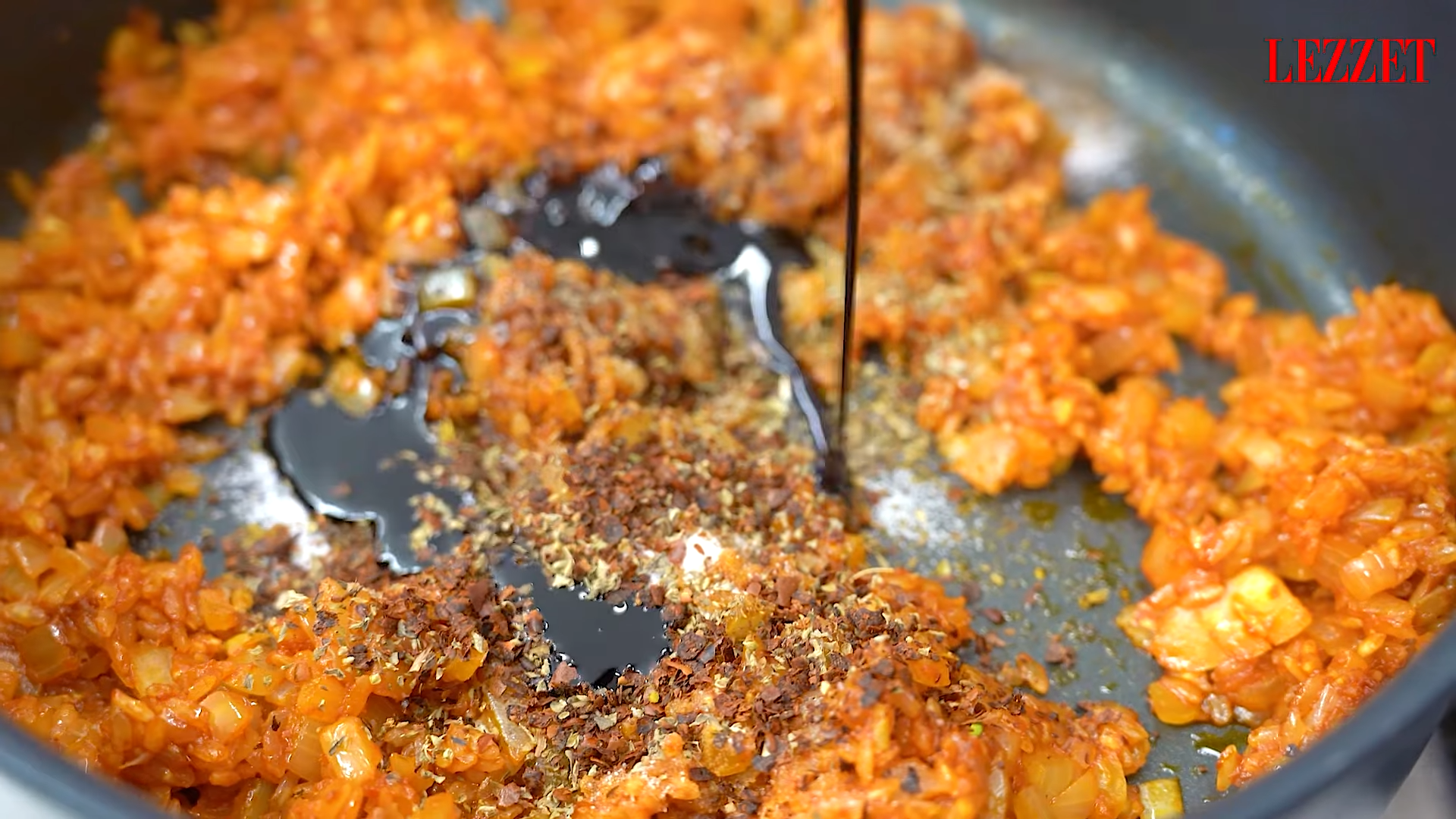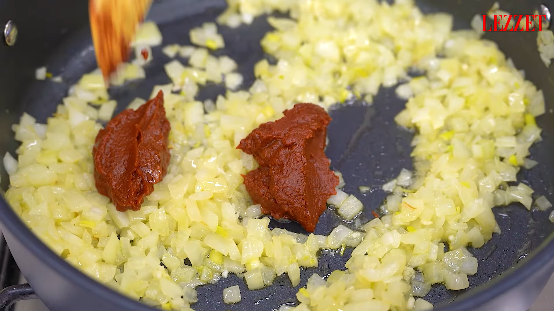 - Soğanları ince doğrayın, sarımsakları da ezin veya doğrayın. Bir tavada zeytinyağını ısıtın, soğanları ve sarımsakları ekleyip pembeleşene kadar kavurun. Domates salçası ve biber salçasını ekleyin, karıştırarak birkaç dakika kavurun.