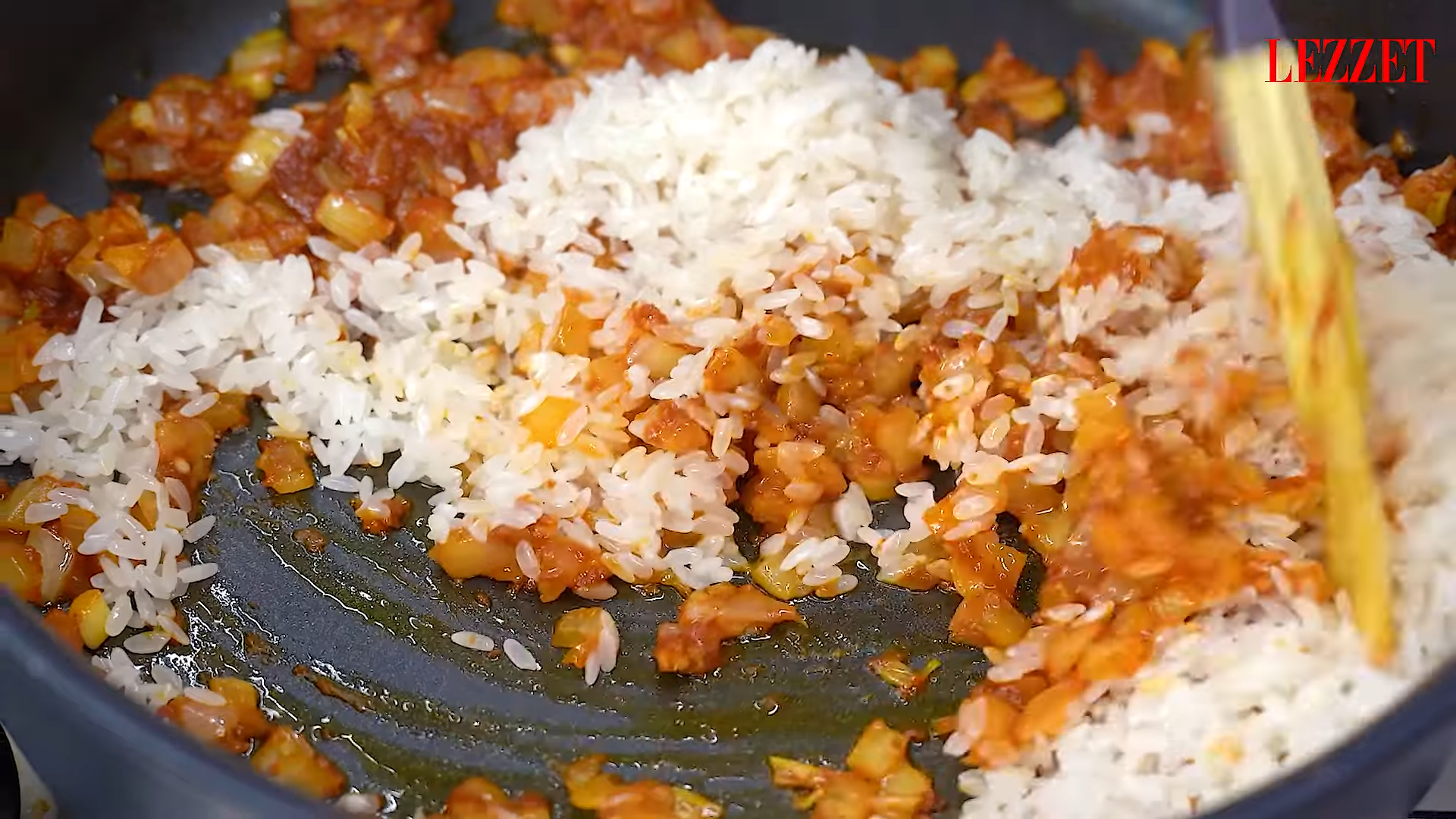 - Pirinci ekleyin ve 2-3 dakika daha kavurun.
