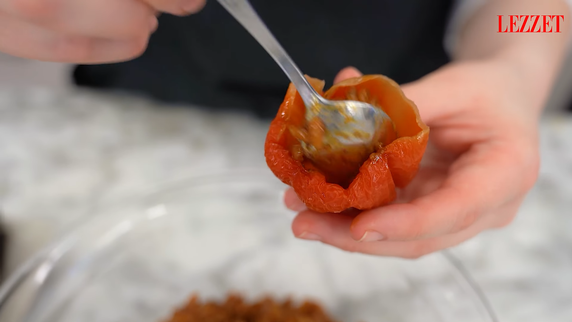 - Hazırladığınız iç harcı kuru patlıcan ve biberlerin içine dikkatlice doldurun.