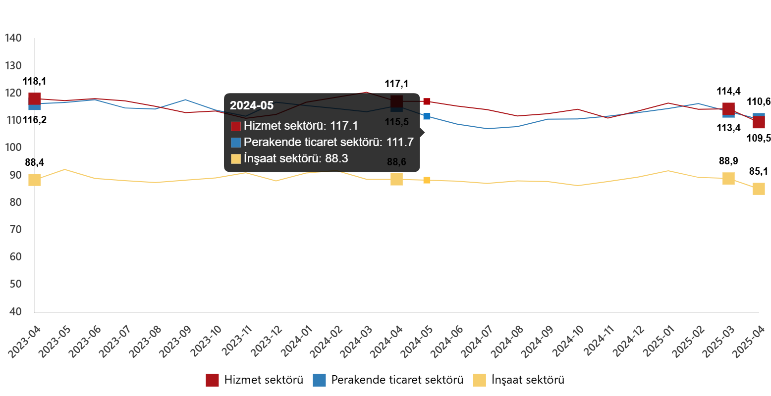 Hizmet, Perakende Ticaret ve İnşaat İtimat Endeksleri, Nisan 2025