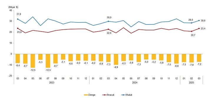 İhracat, ithalat ve dış ticaret istikrarı, Mart 2025