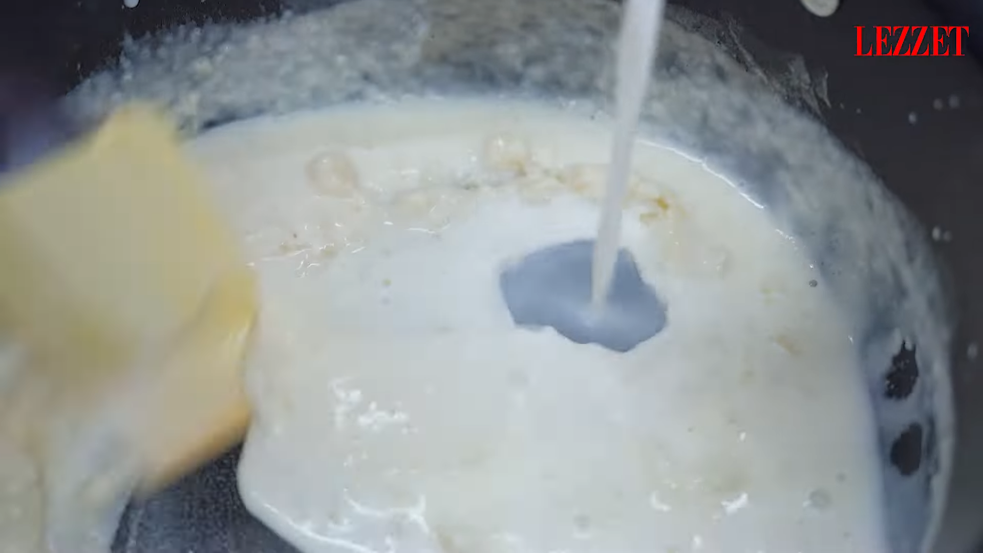 - Bir tavada tereyağını eritin, üzerine unu ekleyip hafifçe kavurun. Ardından sütü azar azar ilave ederek sürekli karıştırın.