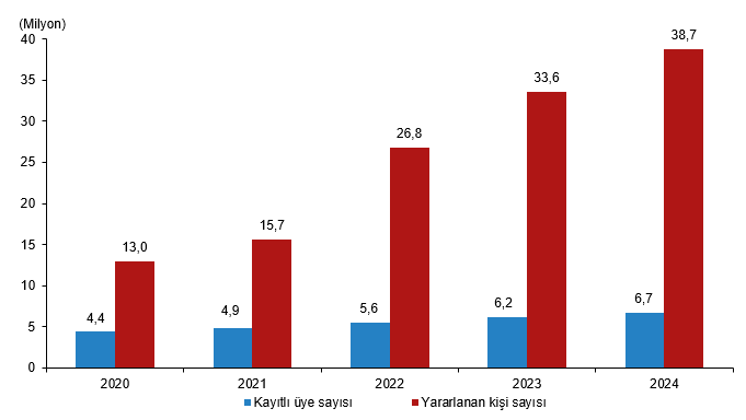 Halk kütüphaneleri kayıtlı üye ve yararlanan kişi sayısı, 2020-2024