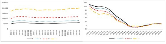 Şekil 2: Araç sınıfına nazaran ortalama araba fiyatı (TL) (Sol panel), araç sınıfına nazaran ortalama araba fiyatının yıllık değişimi (%) (Sağ panel)