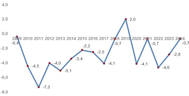Toplam iktisat 2023 yılında GSYH’nin %2,8 ile net borç alan konumdayken, 2024 yılında %0,7 ile net borç alan konumda oldu.