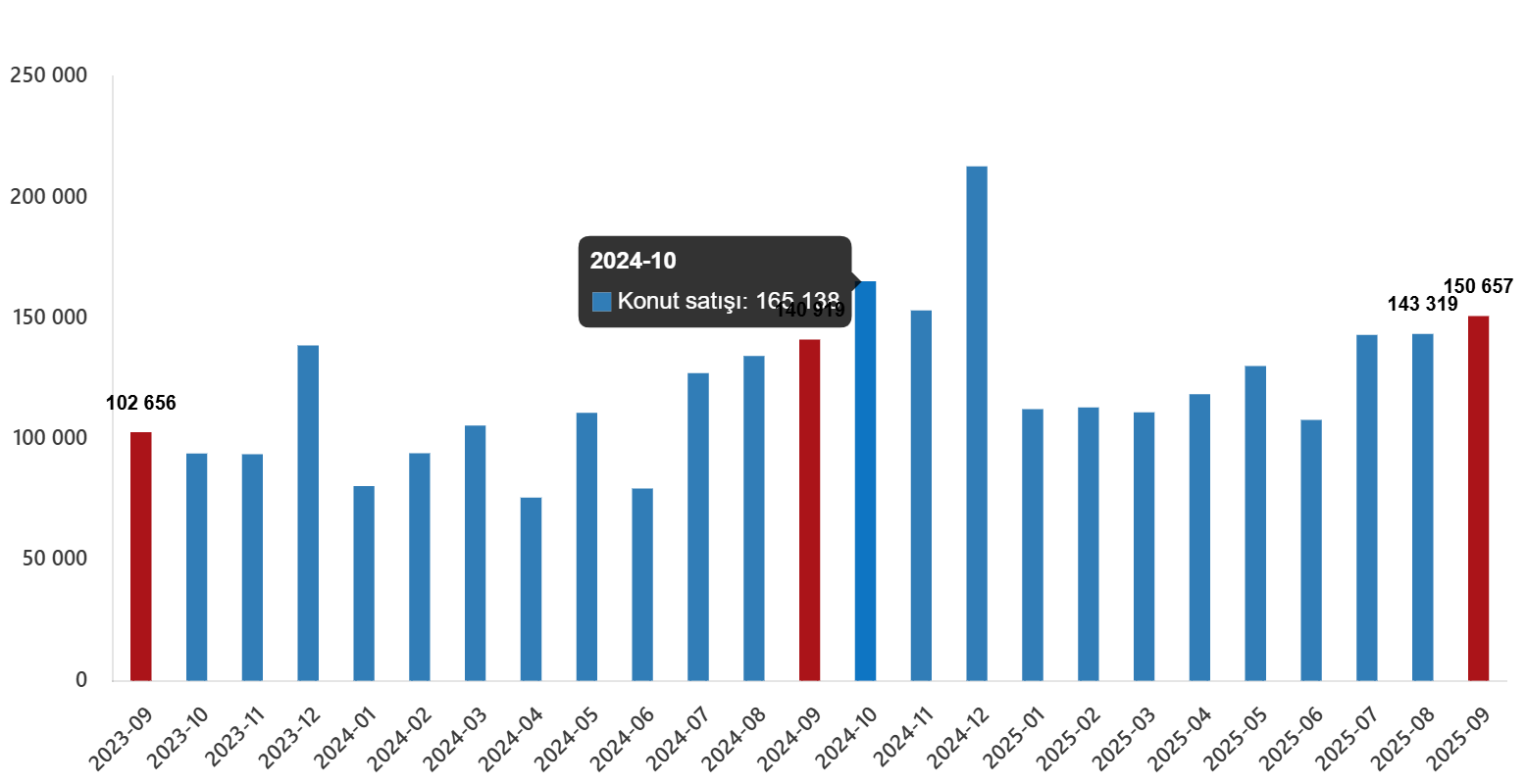 Türkiye genelinde Eylül ayında 150 bin 657 konut satıldı