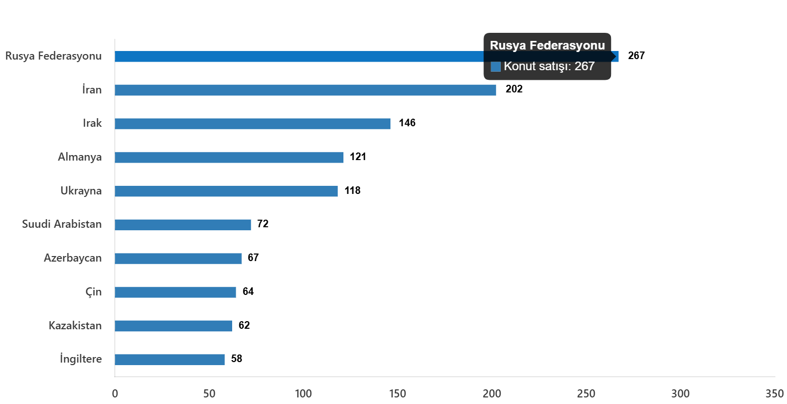 Ülke uyruklarına nazaran en çok konut satışı Rusya Federasyonu vatandaşlarına yapıldı
