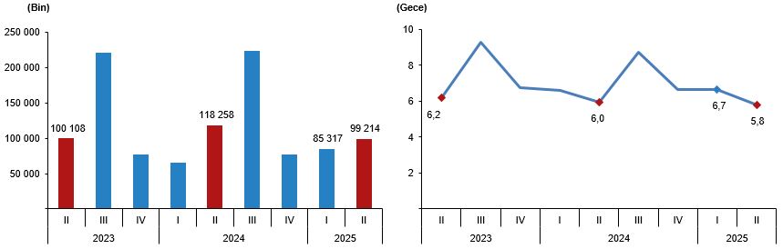 Geceleme sayısı, II. Çeyrek, 2025                                             Ortalama geceleme sayısı, II. Çeyrek, 2025